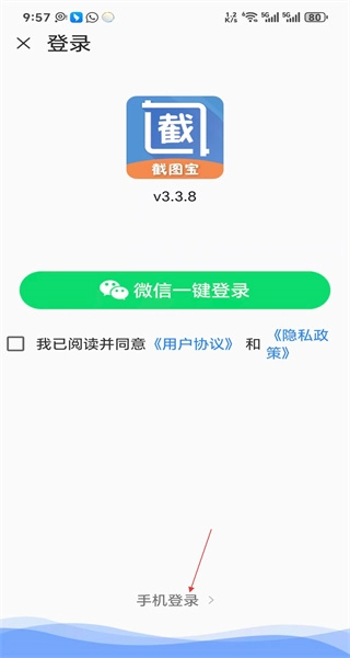 3、进入登录页面后,会看到微信一键登录和手机登录两个选项,此时选择手机登录,即可进入手机号登录界面。