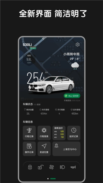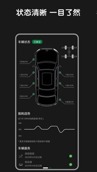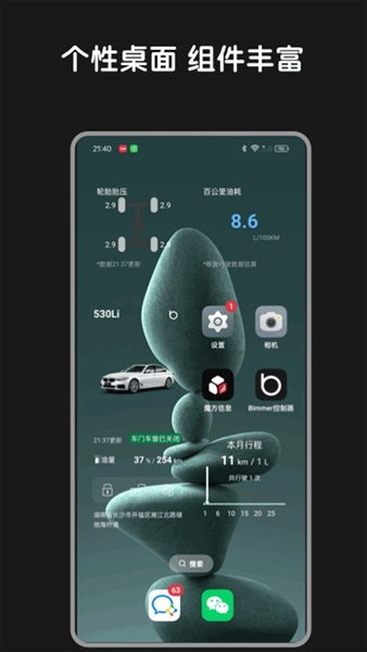 支持多种桌面小组件,且小组件支持自定义样式;通过小组件,用户可以查看车辆状态、胎压、停留时间、油耗、当前位置天气、油价等信息,还能对车辆进行通风、解锁、锁车、鸣笛、控制车灯等操作。