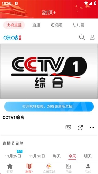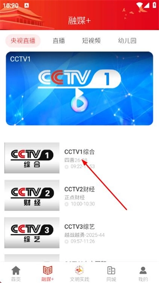 2、在融媒页面找到目标频道并点击,即可进入该频道的播放页面。