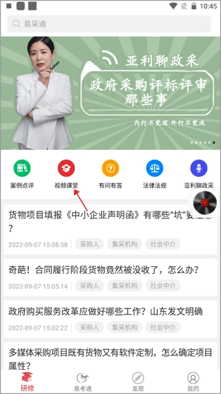 1. 用户借助该平台能够全方位掌握行业动态,观看实时更新的课堂视频课程,从而增强政府采购相关工作的能力。