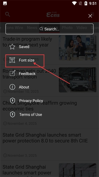 2、打开功能菜单后,找到并点击【Font-size】选项,进入字体大小设置界面。