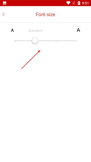 3、进入【Font-size】设置页面后,拖动滑块即可调整字体大小,当前默认处于【Standard】模式。