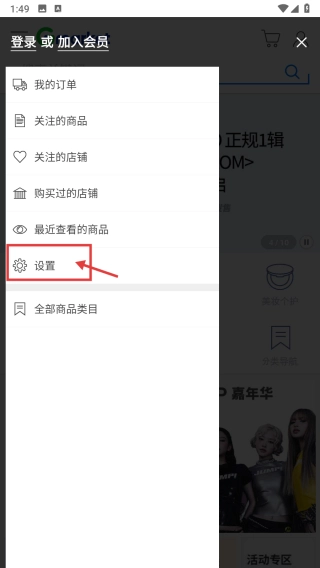 2、在功能菜单中,点击设置选项,进入设置页面。