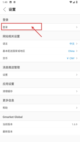 3、进入设置页面后,点击登录选项,即可跳转至登录信息填写页面。