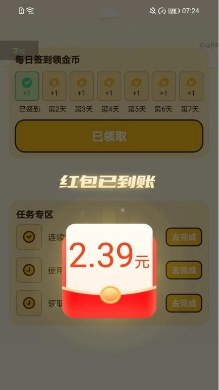 在这里,你可以参加“看字说颜色”的趣味挑战,答对就能拿到现金奖励;每天签到可以领取金币,连续签到还有更多惊喜;任务专区里的各种小任务,完成之后红包就能轻松到账。与此同时,通过步数积累、观看视频等方式,让你在休闲游戏和日常活动中逐步积累收益,提现操作简单方便,轻松实现娱乐和赚钱的双重体验。