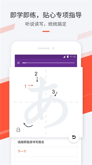 知识讲解、单词背诵、练习测试、总结复习、实战口语演练等等一系列完备的日语学习功能,带着你一步一个脚印的学好日语。