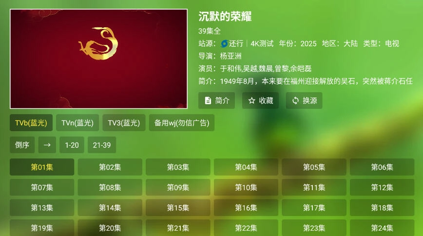 6、点开直接跳转播放,可以调整播放源和观看集数。
