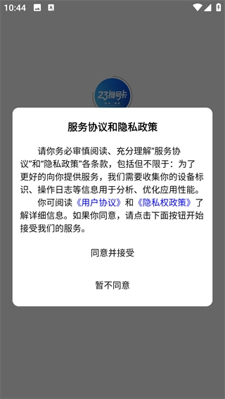1、安装该软件并将其打开,点击“同意并接受”按钮,随后进入软件的登录界面;