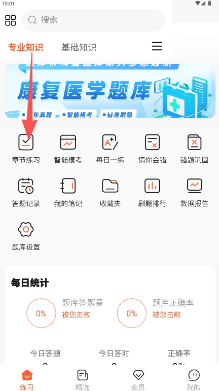 1、配备章节练习模块,支持依据专业知识、基础知识等类别开展系统性的题目训练。