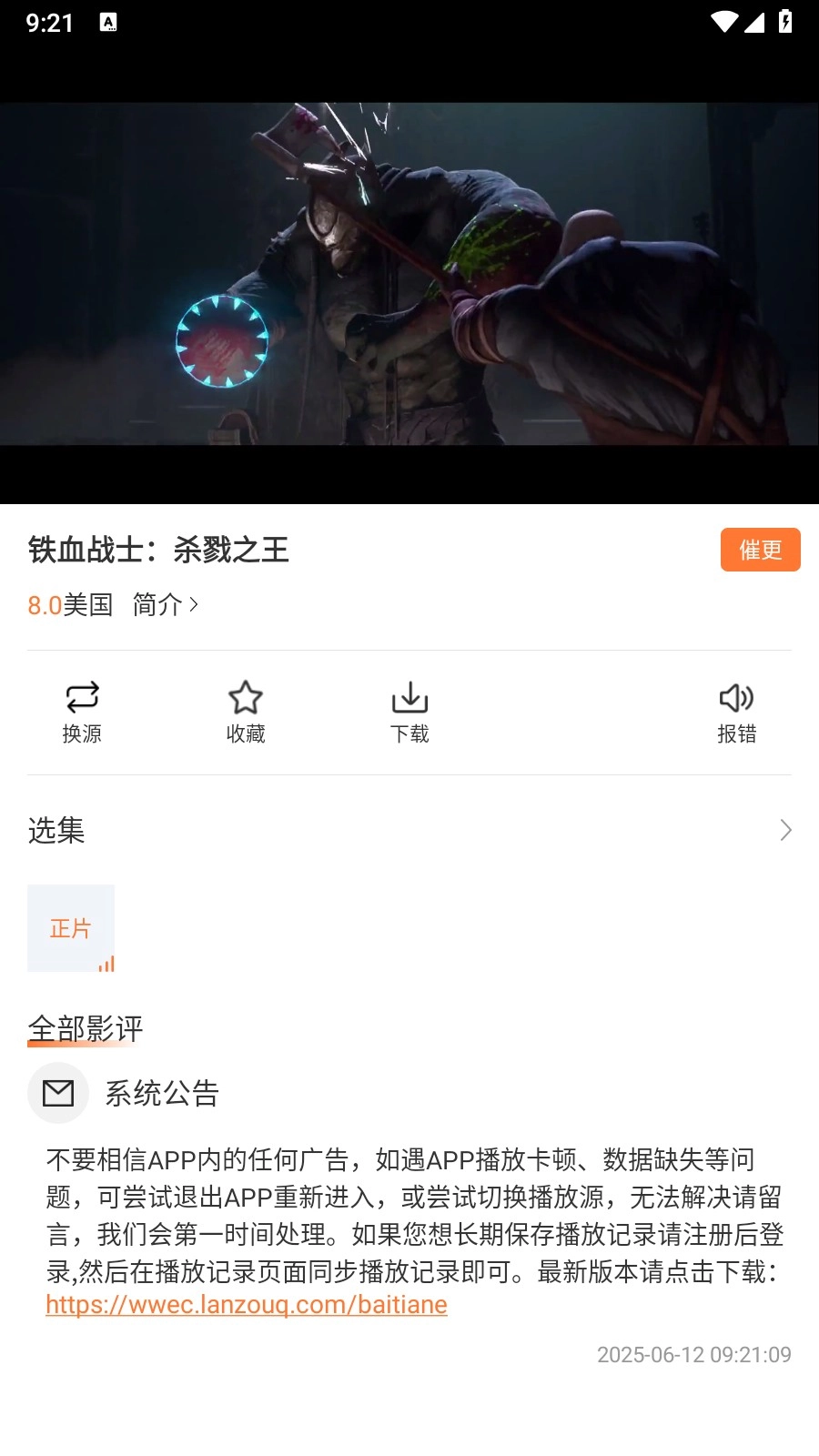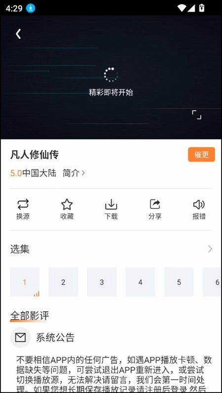 4、我们只需点击对应的视频就能进入观看页面。另外,在这里还能看到换源、收藏、分享、报错等一系列功能按钮,设计得相当贴心。