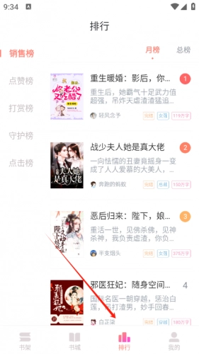 2、这里点击排行,可以看到大量的小说。