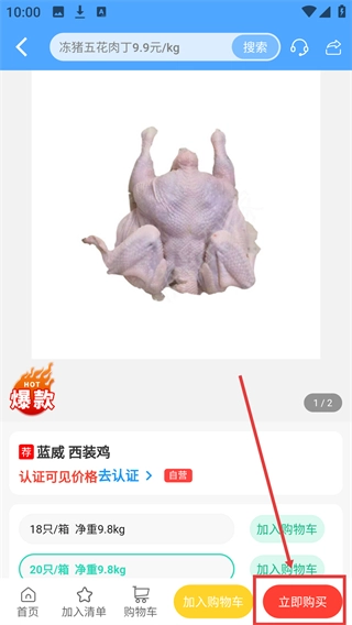 3、在【特价促销】分类下,可看到如【蓝威-西装鸡】等商品,点击对应商品可进入详情页。