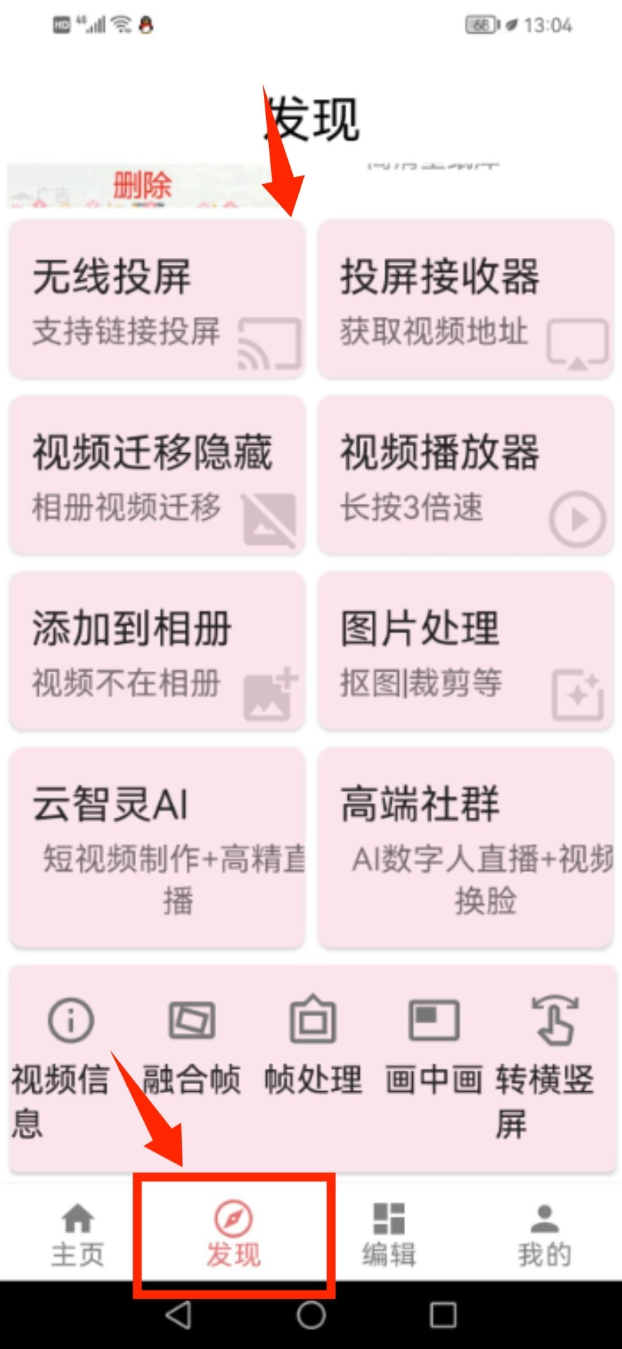 4、使用其他功能,如通过发现页面进行屏幕投影。