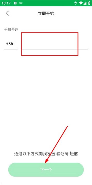 3、在手机登录页面输入手机号后,点击“下一步”以获取验证码。