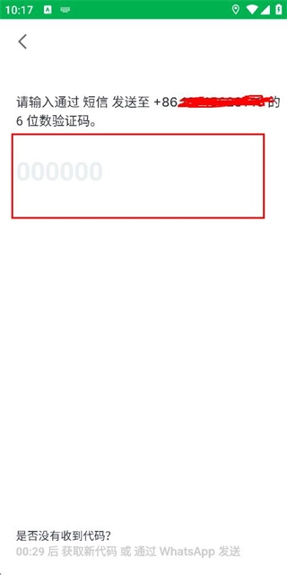 4、在输入短信验证码页面填写收到的验证码,完成账号的登录操作。