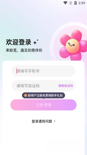 1、打开盼觅App,在登录界面输入手机号和验证码,点击登录。