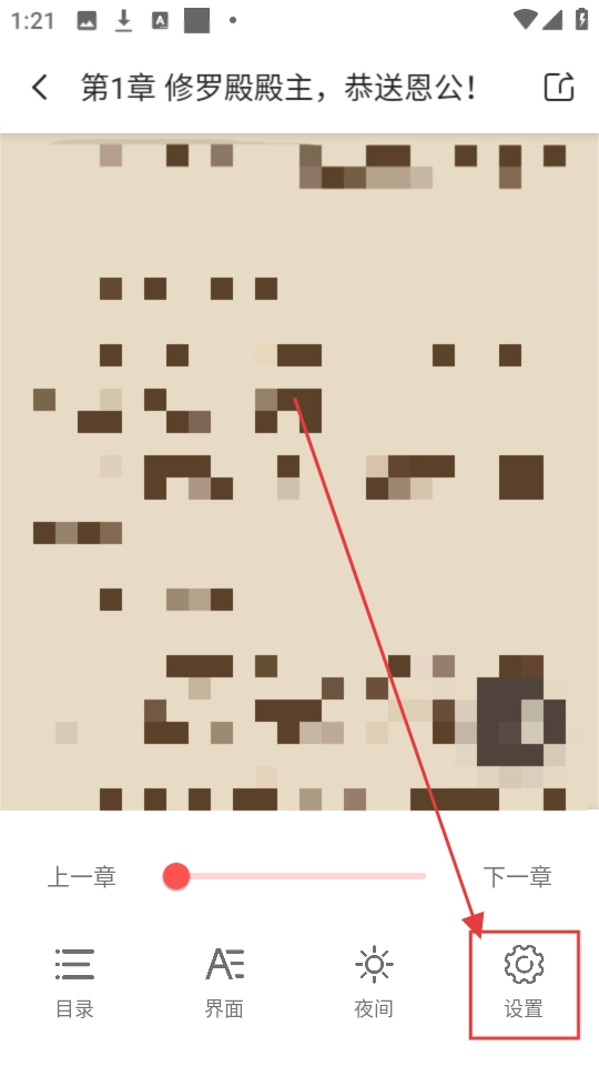 3、在章节阅读页面,点击【设置】,可进入设置页面,调整阅读相关设置啦。