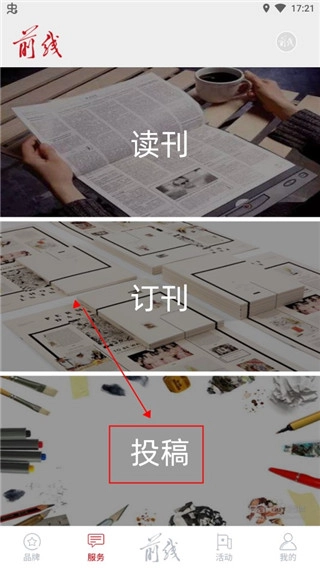 2、在这里点击【投稿】。