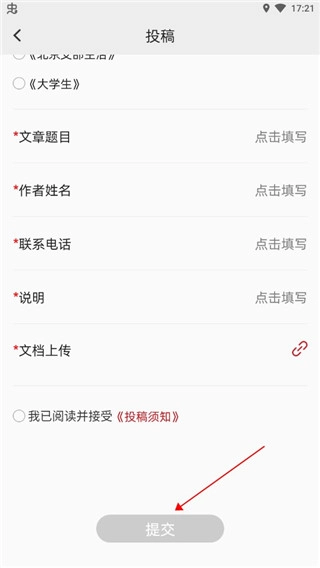 3、进入后将您的文章基础信息填好,点击下方的提交即可。