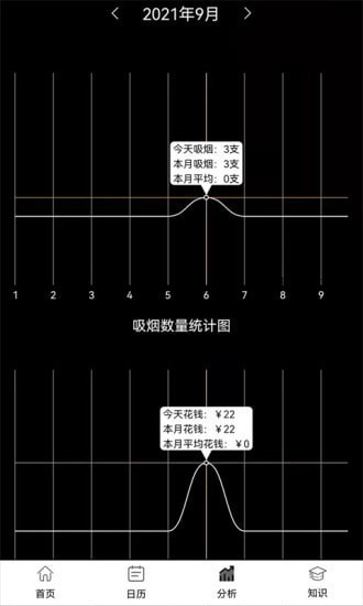 2、买烟统计:精准统计每日、每月及累计买烟花费,直观呈现吸烟经济成本。