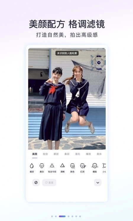 5.高清画质:通过智能磨皮、自然肤质呈现、小头瘦身、面部细节调整等功能,使照片画质更显清晰细腻,精致度大幅提升。