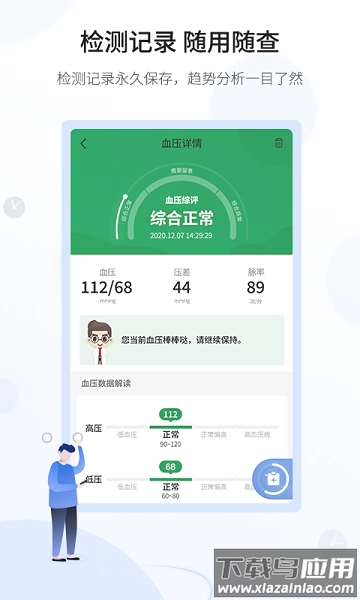 检测记录采用云端存储方式,用户能够随时查阅自身的健康数据;系统会以图表的形式将数据直观呈现出来,方便用户分析健康变化的趋势;同时还提供全天候的健康监测服务,以此满足用户在不同时间段的检测需求。