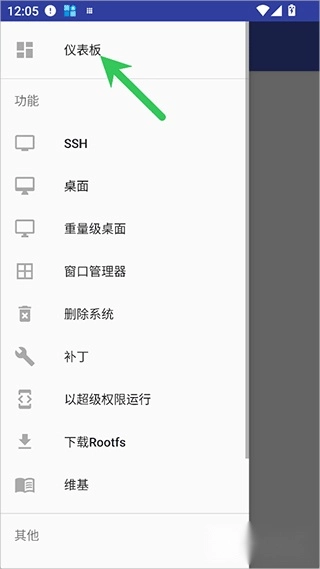 1、启动AnLinux应用,点击界面左上角的扩展功能图标