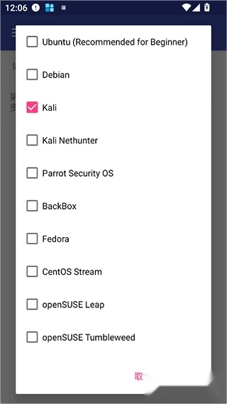 4、在列表中选择 Kali。