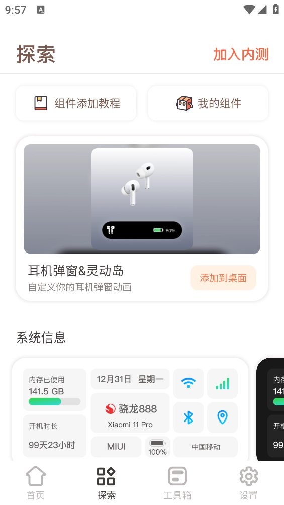 小组件盒子1.8.4版本是一款功能丰富的手机工具合集应用,能帮助用户快速管理手机桌面并获取实用信息。该软件整合了多种个性化小组件,覆盖系统状态监控到生活资讯订阅等各类功能,操作简便直观,可让手机桌面焕然一新。用户能依据个人喜好自由搭配组件样式,还能实时查看电量、内存等设备信息。最新版本新增了耳机弹窗与电池信息组件,界面设计也更为美观流畅。若你需要一款高效便捷的桌面管理工具,现在即可体验。