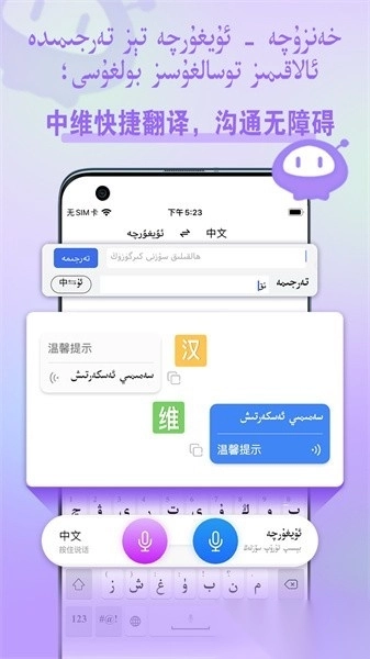 维吾尔语专用词库,涵盖高频词汇与专业术语;智能算法会实时学习用户的输入习惯,使用起来会越来越顺手;应用墙汇聚了主流的维吾尔文应用,能够直接跳转;多语言键盘支持维吾尔文、英文、中文的混合输入。