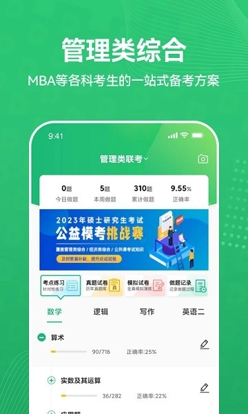 收录近十年管理类联考真题及权威模拟题3000+,支持章节练习/错题重做/智能组卷三种模式;独创拍照搜题功能可识别手写题目,5秒内返回详细解析与关联考点。