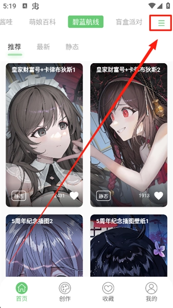 1、打开软件在首页可以看到各种壁纸