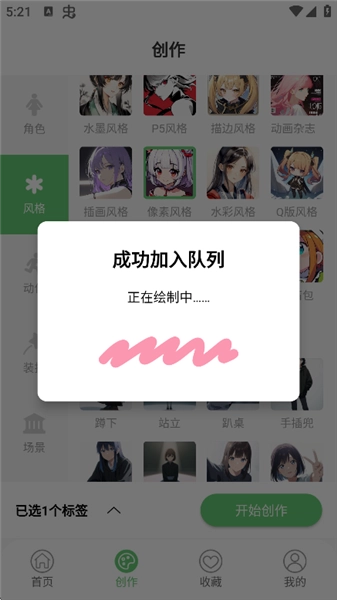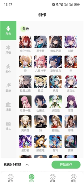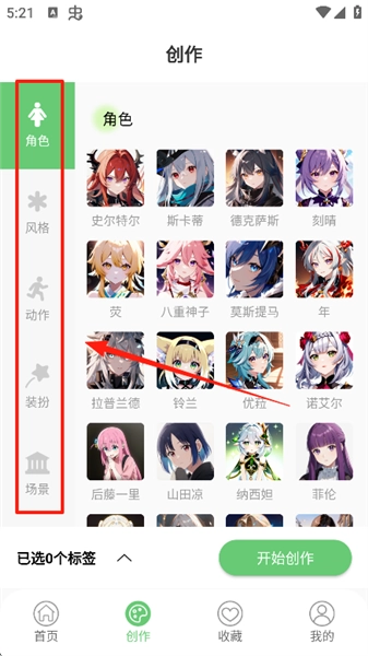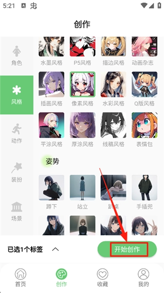 3、选择标签后点击开始创作