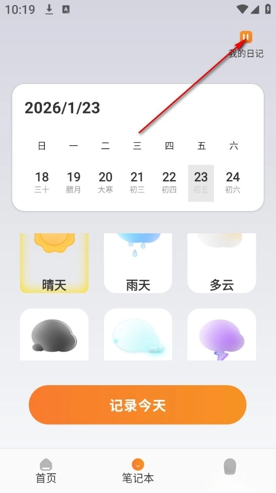 4、最后返回主页点击右上角我的日记查看即可