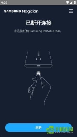 2.进入主页后,把硬盘与手机连接起来,接着点击【刷新】按钮。