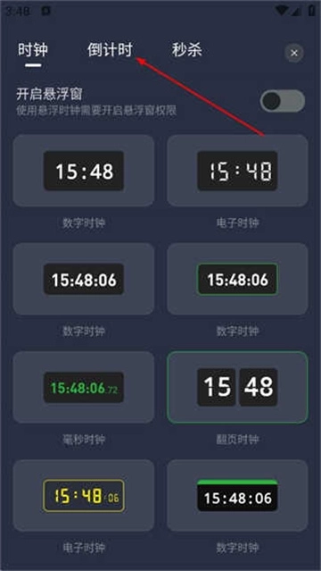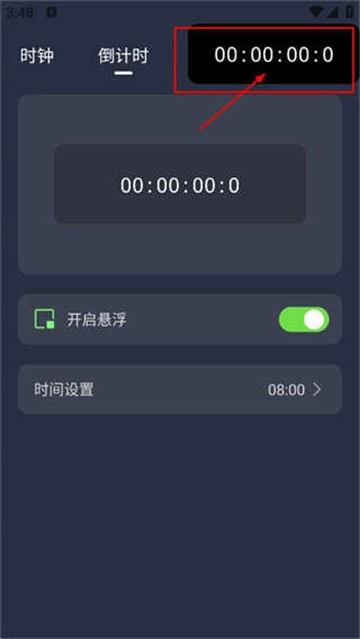 2、进入悬浮时钟页面后,点击倒计时标签,就能切换到倒计时操作界面。
