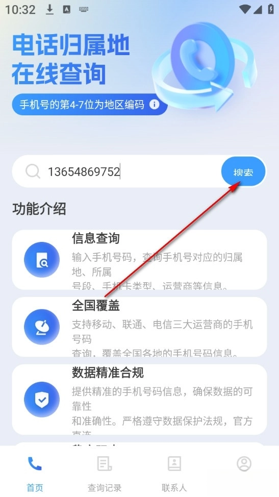 【快捷查询】输入手机号码,就能快速知晓其归属地详情。