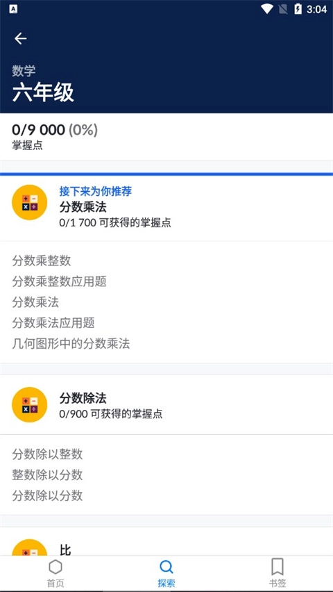 比如选择数学栏,按照自己的年级来选择。