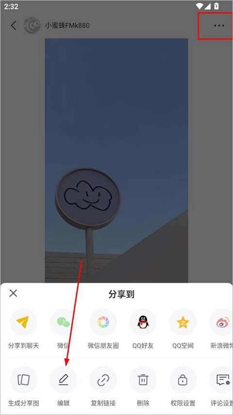 点击页面右上角“…”,再选择编辑