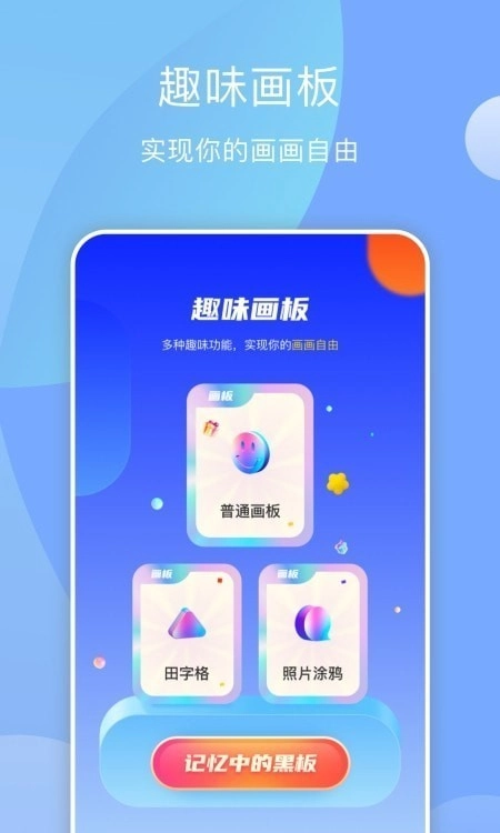 当用户能够较好地掌握绘画技巧后,我们可以进入下图所示的页面,从画板、田字格画板、照片涂鸦以及黑板这四个空白面板中选择一款,开始随心创作。