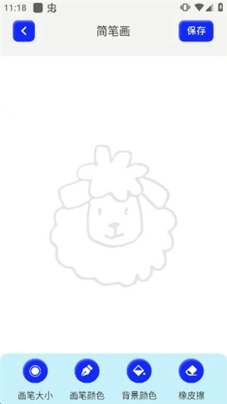 2、简笔画界面下,支持用户切换画笔的大小、颜色以及背景颜色,绘画的操作无法撤回但可以使用橡皮擦清理