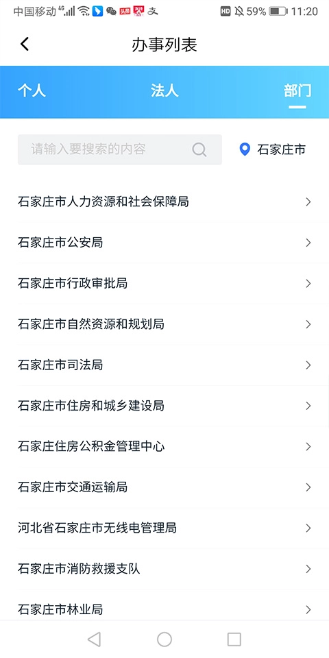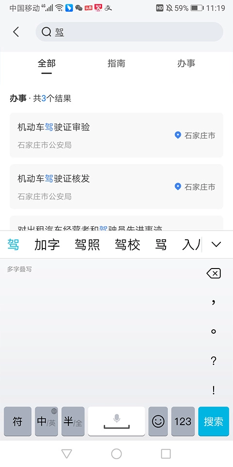 输入办事事项的相关关键字,就能智能检索到具体的办事项目