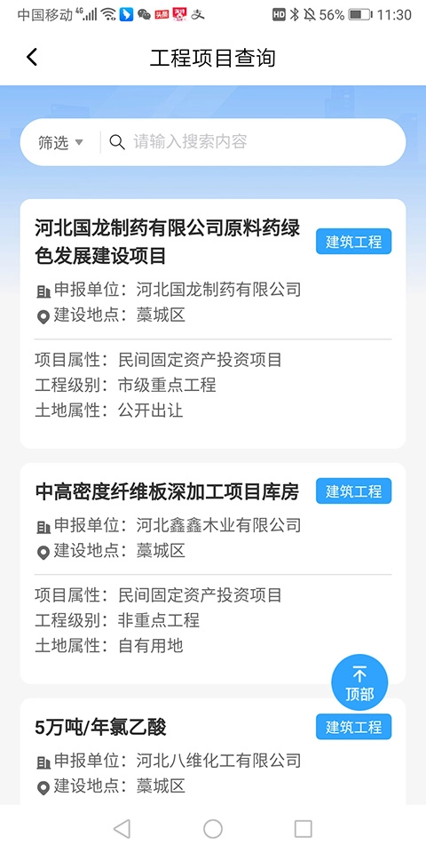接下来,用户就能借助页面上的搜索框,查找自己需要的工程项目了。