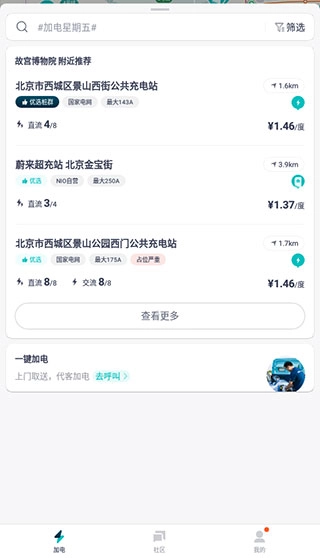 蔚来旗下有一款名为“加电加电”的充电桩产品,它能为新能源汽车用户提供便捷的充电服务。这款产品配备的软件整合了全国范围内的充电桩位置信息,用户借助GPS定位功能,就能迅速找到周边可用的充电桩,满足车辆充电需求。对于新能源汽车用户普遍担忧的电量消耗过快以及充电桩难找等问题,该软件可以有效缓解他们的出行顾虑。用户还能随时查询充电站点的具体位置和收费标准,并且可以在社区板块与其他用户交流互动,分享讨论各类感兴趣的话题。