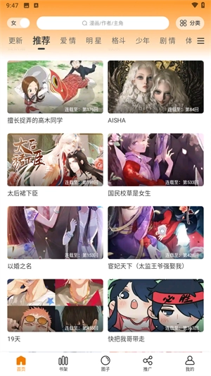 畅销漫画实时更新。这款应用程序会及时推送最热门的漫画作品,让用户能更轻松地追更。