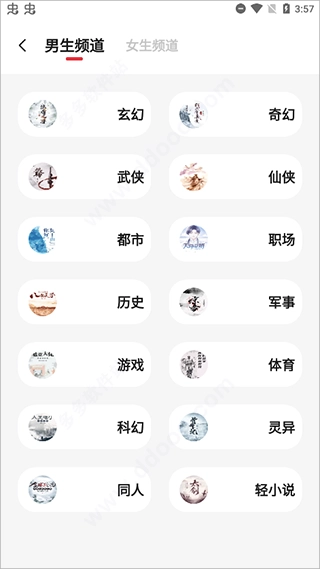 知轩藏书手机版同样也划分成了男生频道和女生频道。