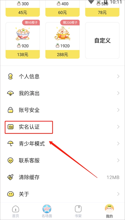 在“我的”中选择“实名认证”选项。