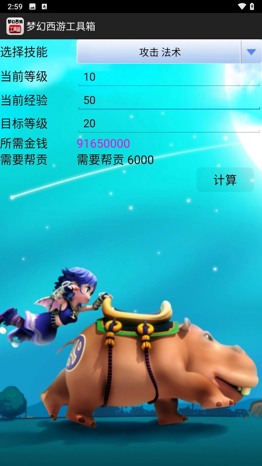 首先在本站下载并安装梦幻西游工具箱后,进入软件主页面就能看到有很多可计算的内容。