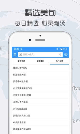 中英翻译官是你可以随身携带的优质语言助手。这款APK支持英语、日语、汉语等多种语言,并且具备图片、语音等多种翻译形式,既能完成文本翻译,还能借助图片、语音等方式为你实现快速翻译!