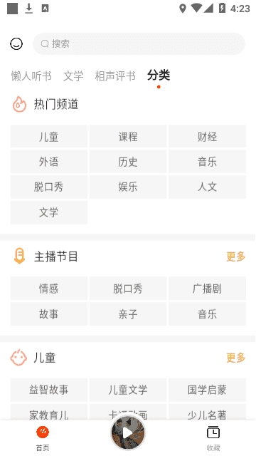 3、听书吧是目前市面上资源最为丰富的听书软件,其资源分类包含有声小说、百家讲坛、相声评书以及人文社科等类别。